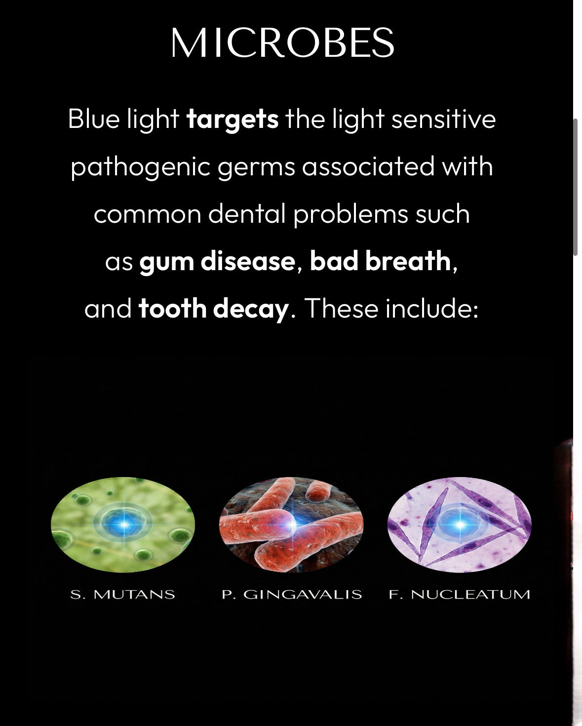Blue LED light is a key component in professional whitening systems. Using a blue light mouthpiece at home helps users achieve bright white teeth more efficiently and consistently. While also targeting bacteria that contribute to staining and bad breath.